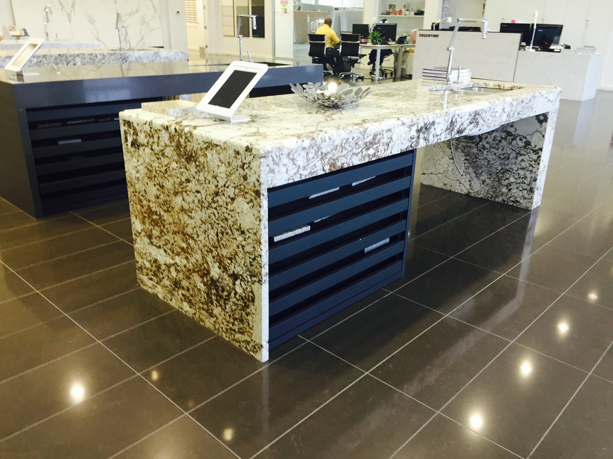 He provides vendors of natural stone around the world with custom bullnose, beveling, cut to size, and texturing of their products to allow them to offer a wider variety of materials with more versatility.